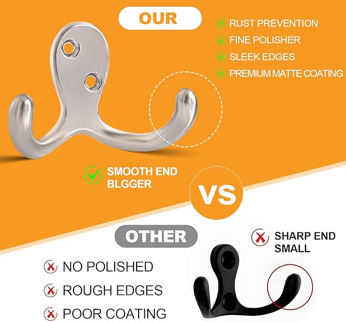 - 【SUPERB CRAFTSMANSHIP】The hooks for hanging are finely polished with smooth edges, high quality plating with matte coating, wear-resistant and rust-resistant