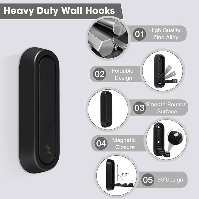 - 【Foldable Design】: Our foldable wall hooks adopts a 90° foldable design, which can be easily unfolded. When not in use, the wall hook can be hidden, which can make full use of small space and help you organize and hang items.