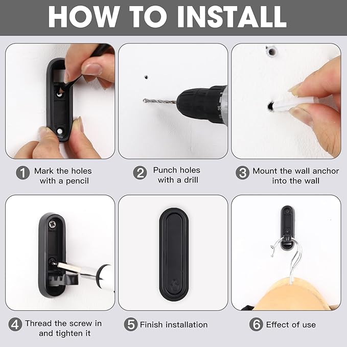 - 【Easy to Install】: Our coat hooks can be easily installed on solid wood or wall, and the installation hardware includes screws and expansion wall anchors. You can complete the installation by yourself in a few minutes.