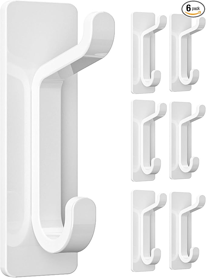 Self Adhesive Hooks, Extra Sticky and Strong, Hanging up to 10LB, Heavy Duty Stick on, No-Nail Hook for Back of Door, White 6 Pack